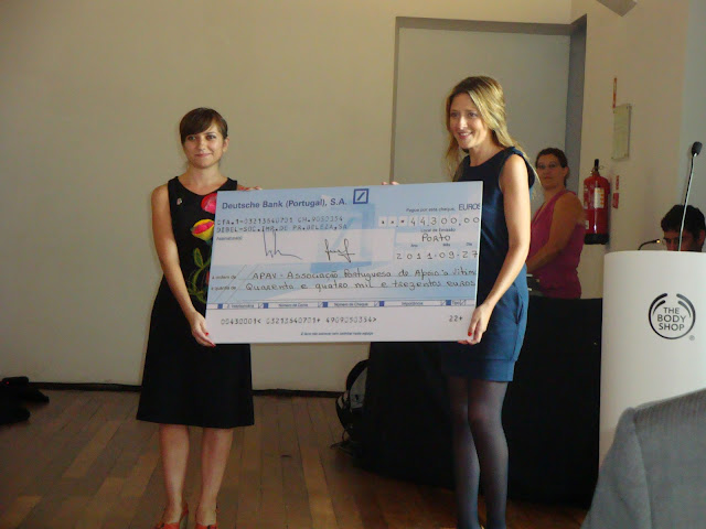 Como já referi anteriormente, um dos momentos do evento foi a entrega de um cheque no valor de 44 mil e trezentos euros à APAV, fruto de várias campanhas contra o tráfico de mulheres e crianças.