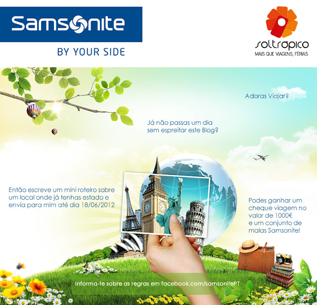 Lembram-se de vos ter falado no passatempo Samsonite Portugal? Pois é, terminada hoje. E se ainda não me enviaram (para o e-mail: [email protected]) o roteiro da viagem podem lembrar-se da vossa última viagem e escrever algo do género: