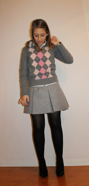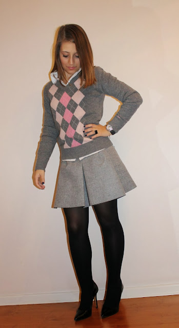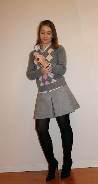 A saia é super gira e combinas-te a super bem. Adoro a conjugação de rosa com cinza no inverno. :)