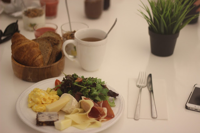 Foi a primeira vez que fui a este espaço e gostei muito, em especial pão biológico, tão típico deste espaço. Depois também tivemos direito a ovos mexidos, iogurte com granola, diversos queijos, sumo natural, capuccino, entre outras delícias.